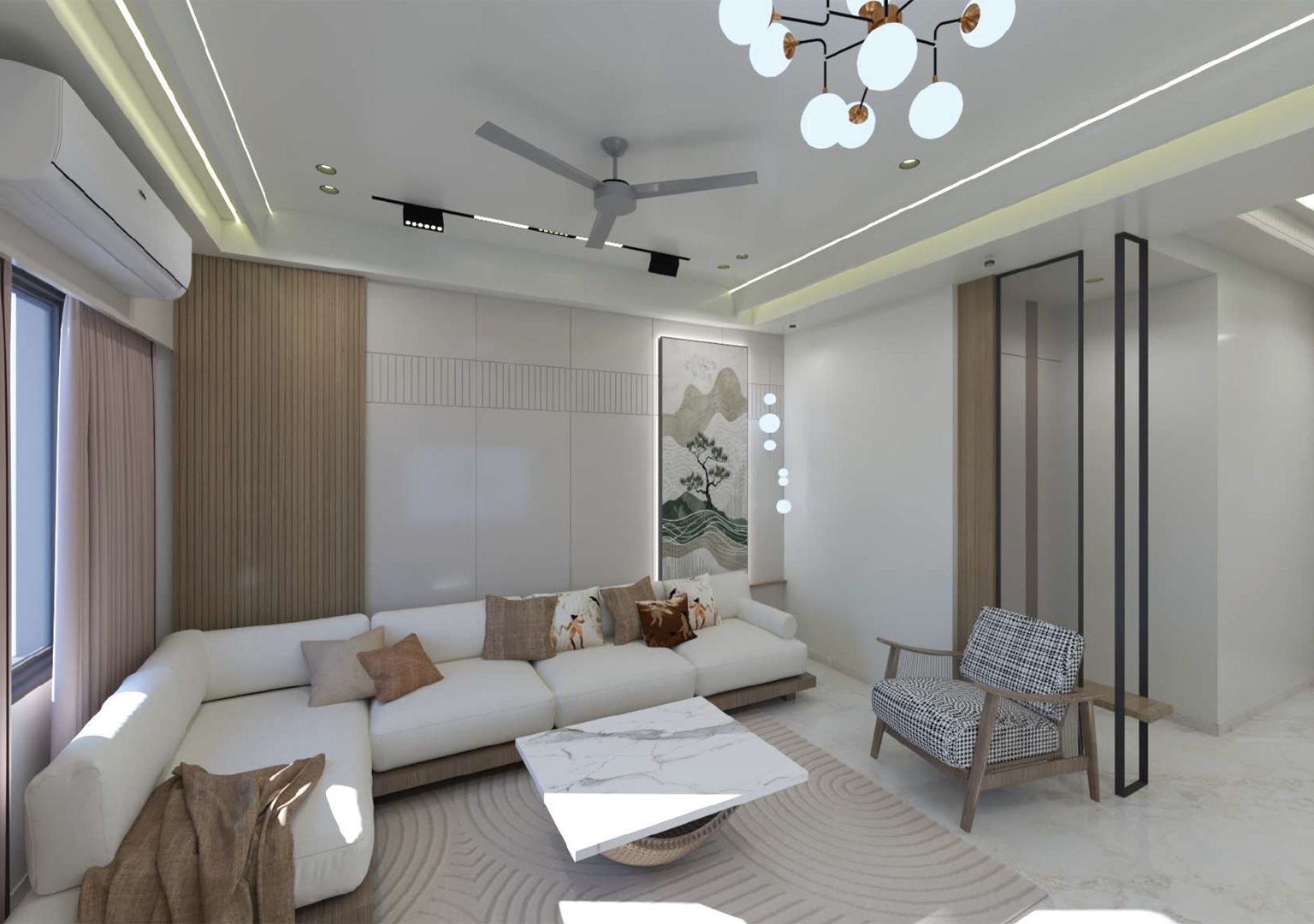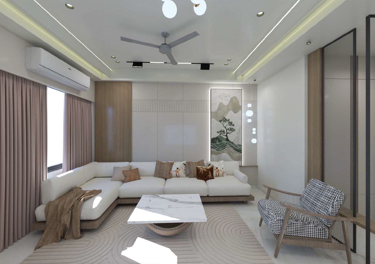 At Anant Design Studio, our Living Room interior design projects are crafted to create welcoming spaces that balance comfort, style, and social interaction. As the heart of the home, the living room is where connections are made, guests are entertained, and everyday moments are enjoyed.